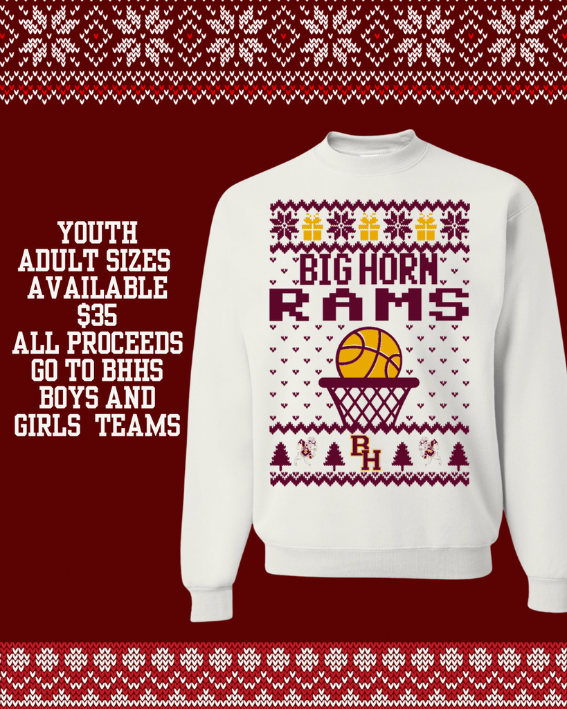 Nothing says “Big Horn Pride” like hosting the Foothills Classic Tournament AND having the best holiday sweater in the gym! Snag this festive Big Horn Basketball Ugly Sweater and rep your Rams as we start the season on our home court.